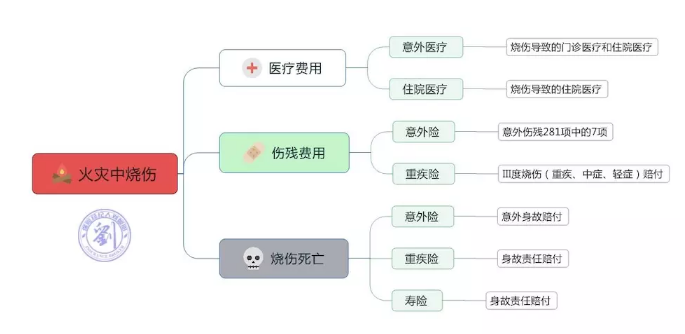 如果燒傷更嚴重或火災更嚴重,導致死亡,那么重大疾病保險、意外險和壽險可以得到賠付。最后,我們整理了發(fā)生火災時(shí)的不同情況,以及哪種保險可以彌補。