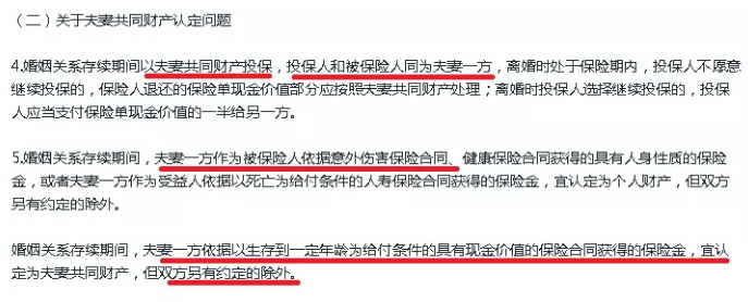 (3)對于丈夫和妻子購買(mǎi)的保險,產(chǎn)生的生存金應為夫妻共有的財產(chǎn)。